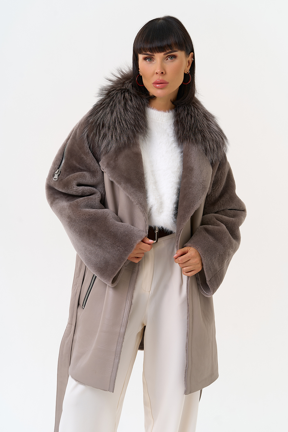 Отделка ворота - мех лисы, цвет серебристый